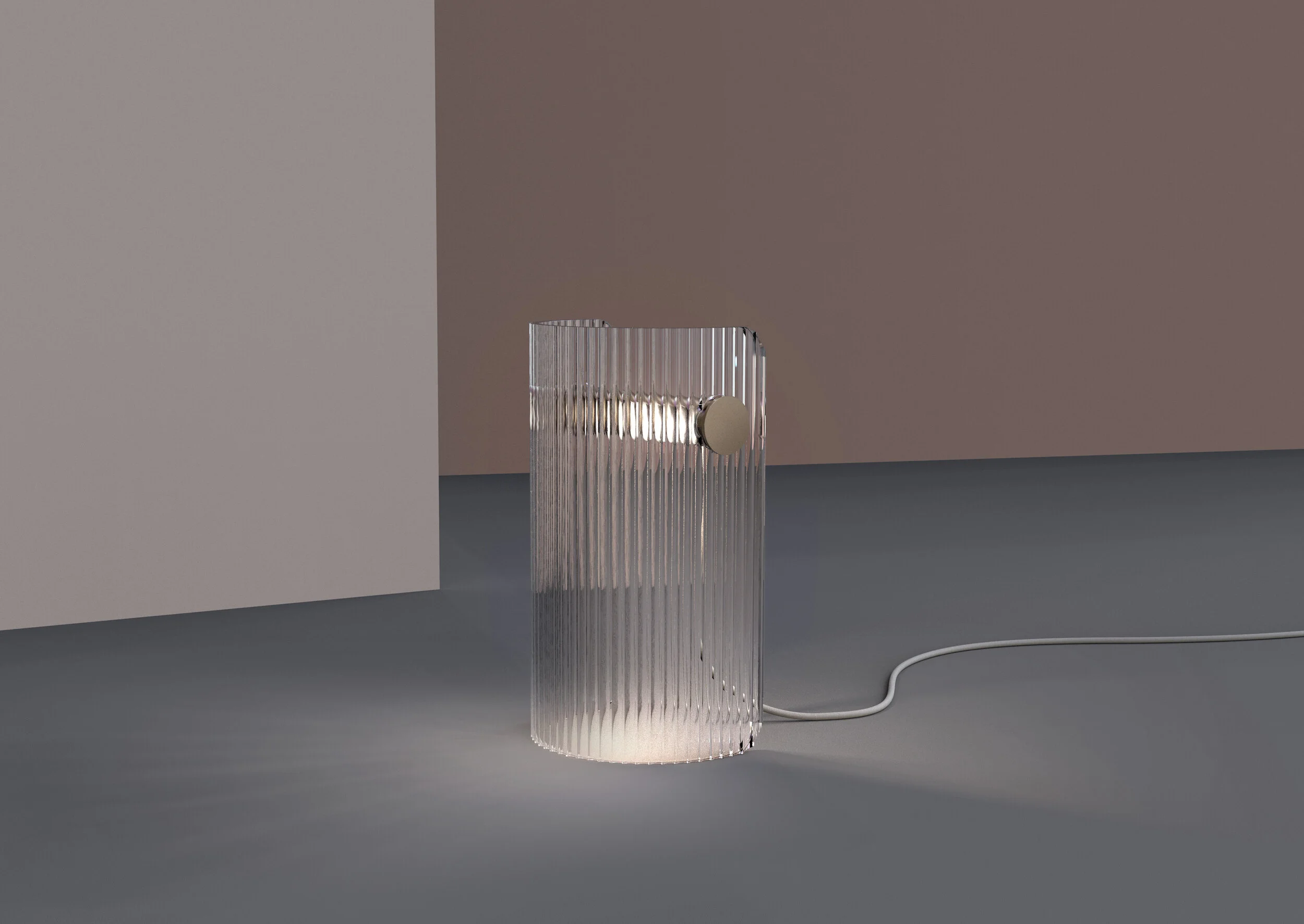 Post Lamp Fabricated from slump formed glass and aluminum. Post lamp is a sculptural lamp with an articulating light tube that allows for adjustment of the light intensity.Designed by Jacob Mailman Jacob MailmanJanuary 15, 2020